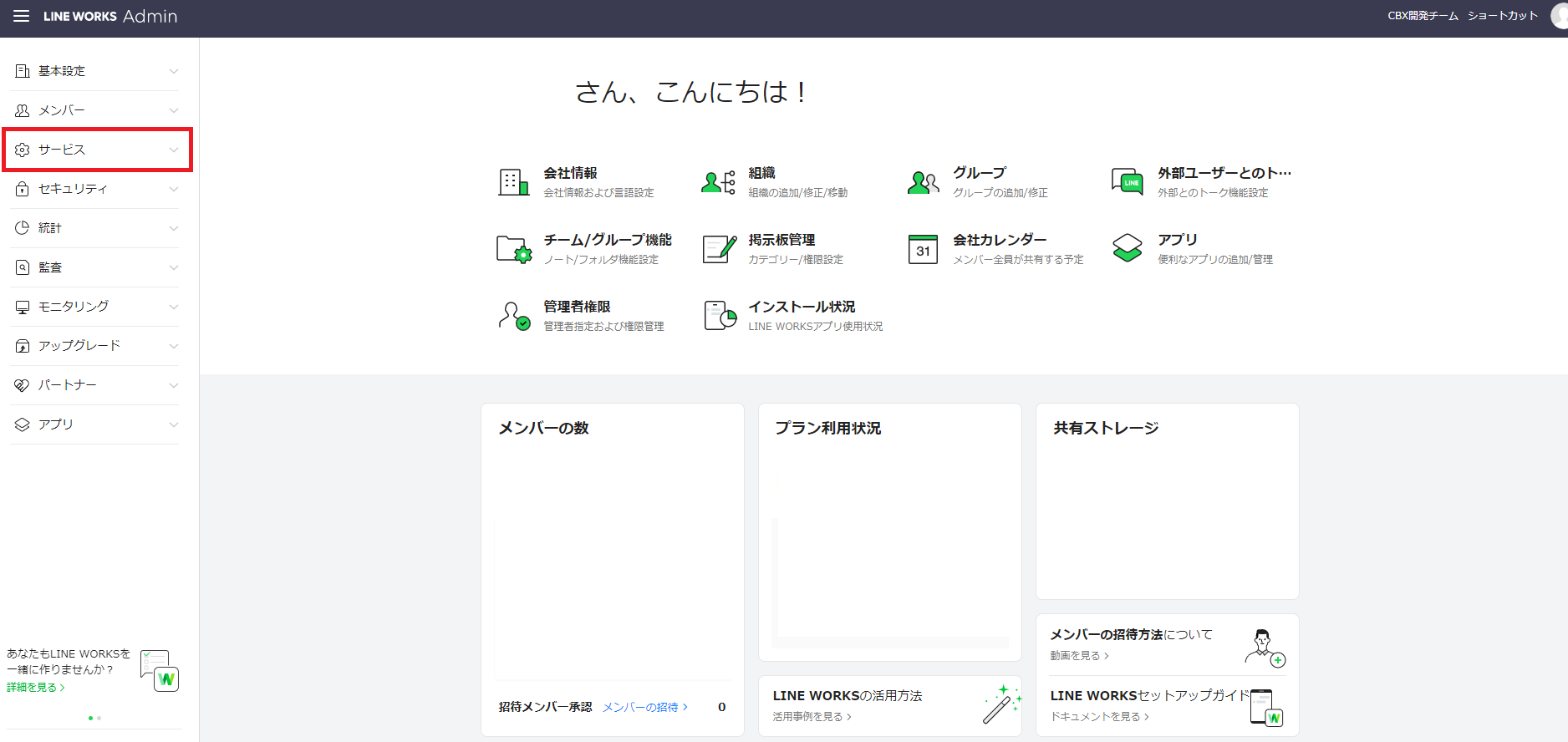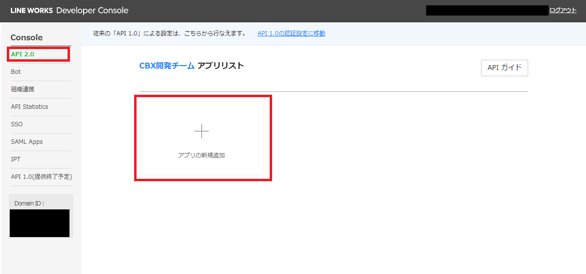 以下のリンクから、LINE WORKSの Developer Consoleにアクセスします。