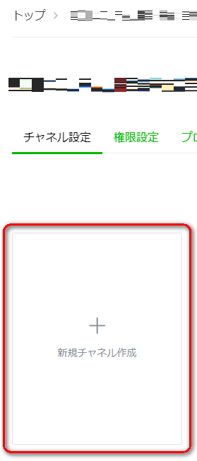 - [チャネル設定] にある新規チャネル作成 を押下します。