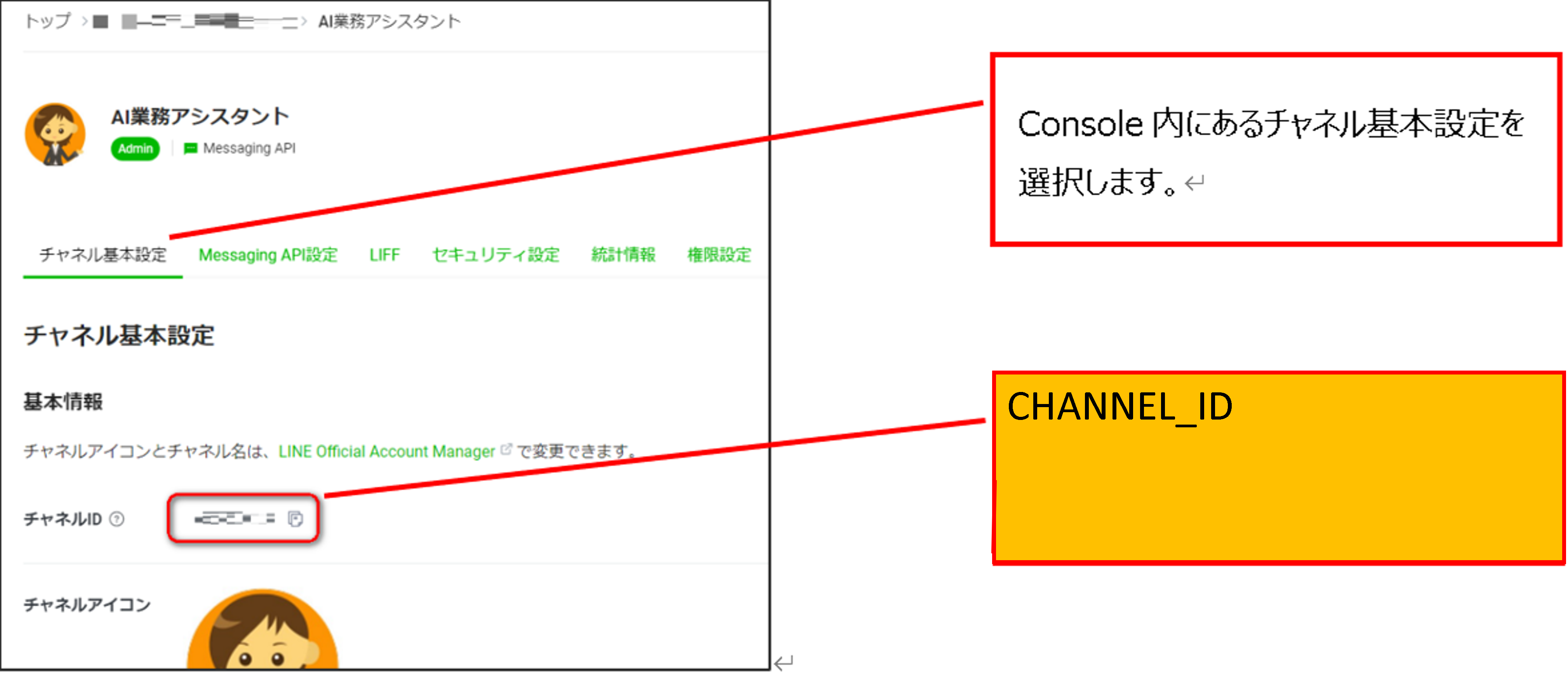 ※のちの手順で管理画面のCHANNEL_IDにチャネルIDを登録します。