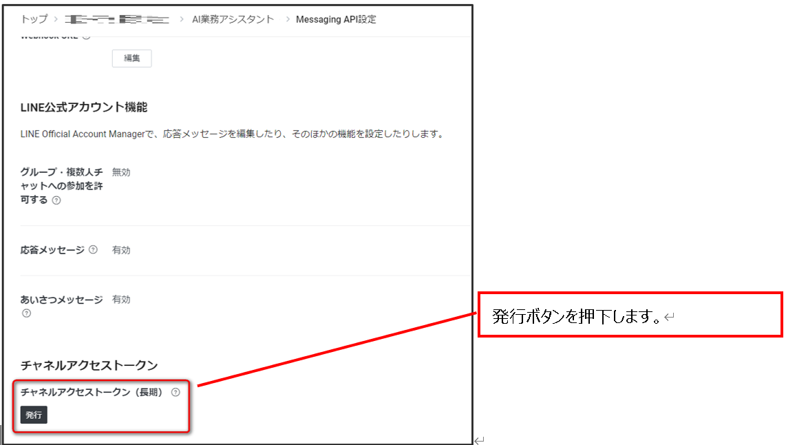 ※のちの手順で管理画面のCHANNEL_ACCESS_TOKENにチャネルアクセストークンを登録します。