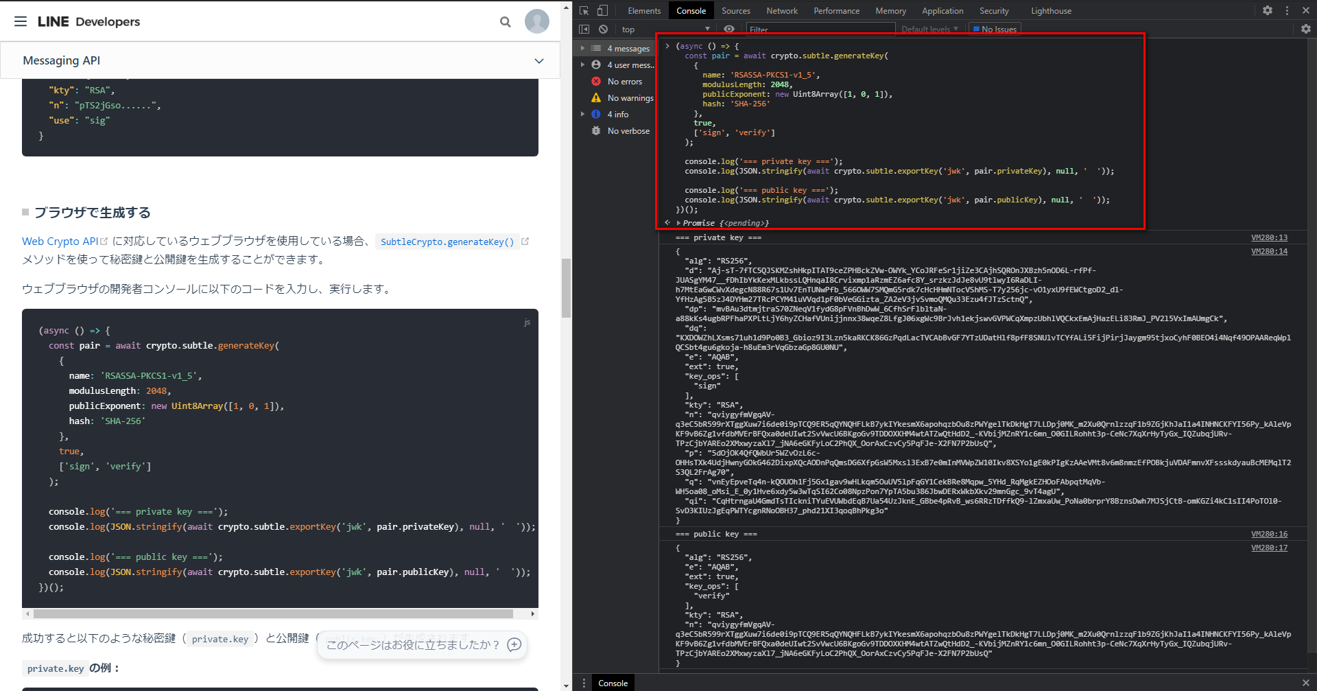 console.log(JSON.stringify(await crypto.subtle.exportKey('jwk', pair.privateKey), null, ' '));