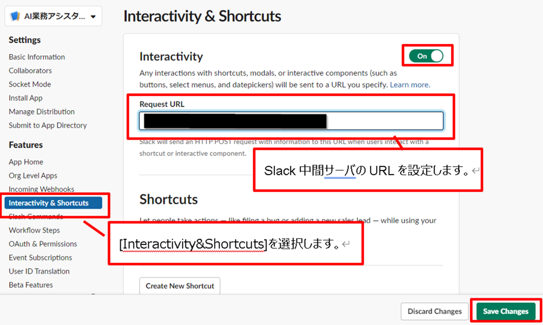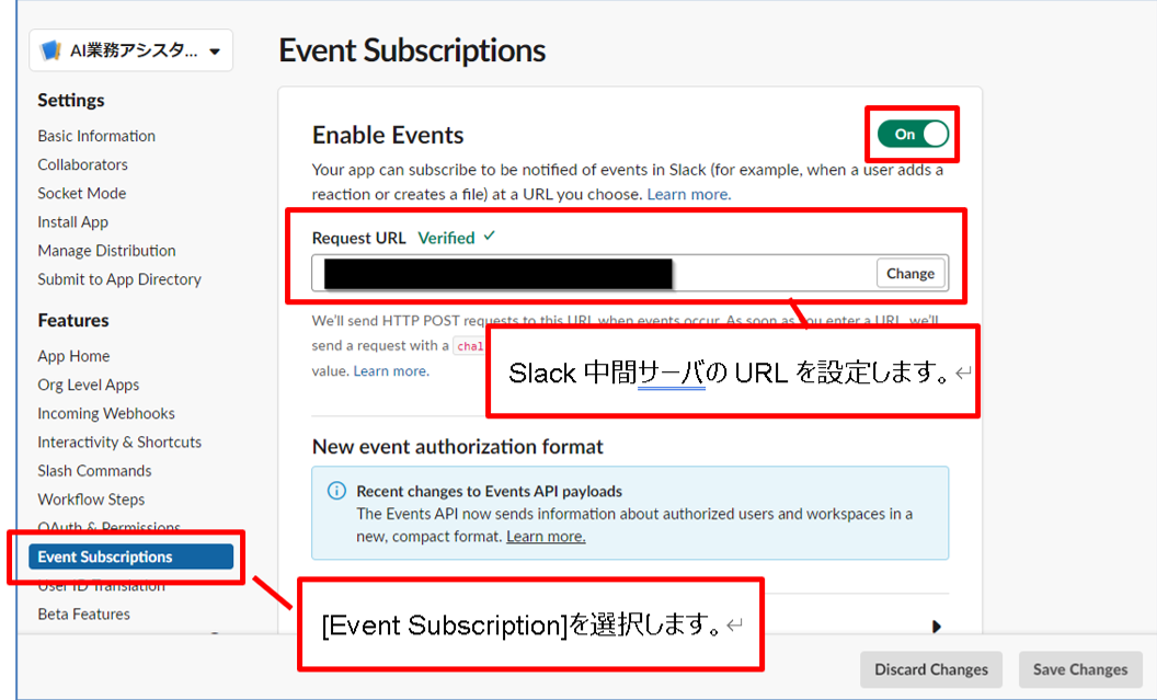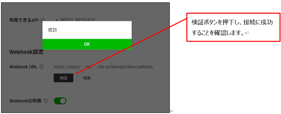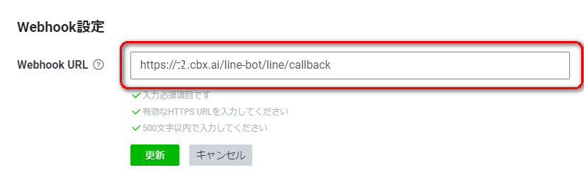 - Callback URLに新たに表示されたURL入力欄に通知されたAPIサーバーURLを入力します。