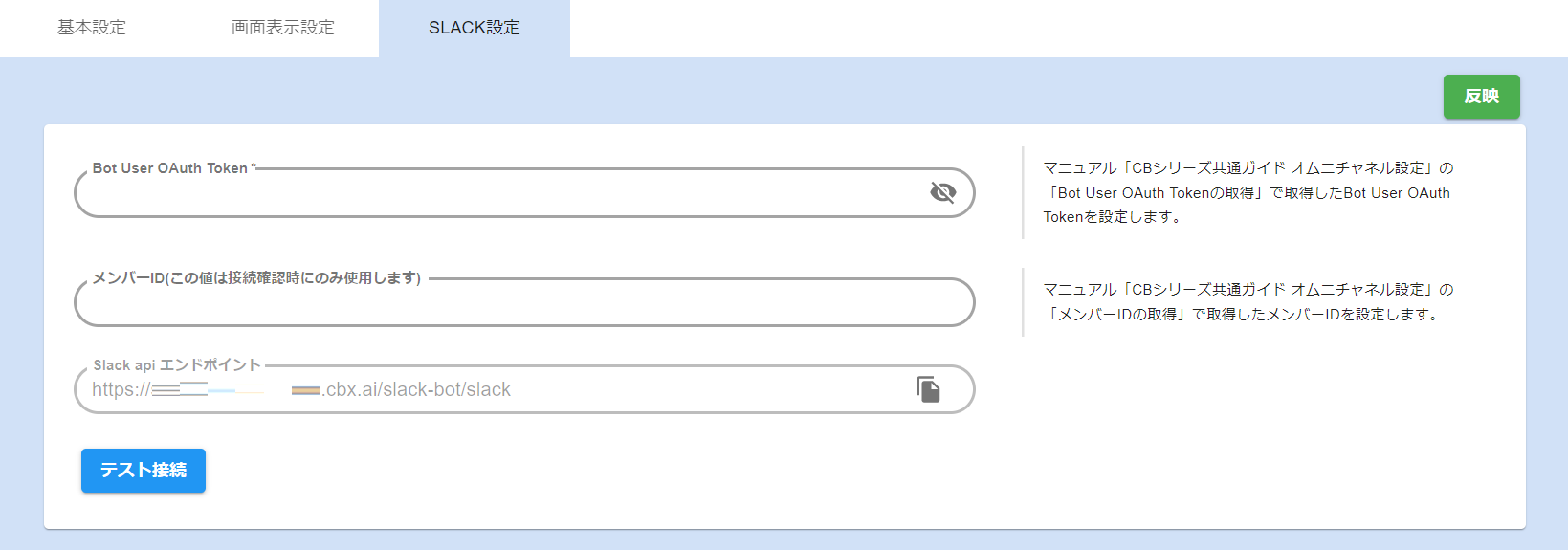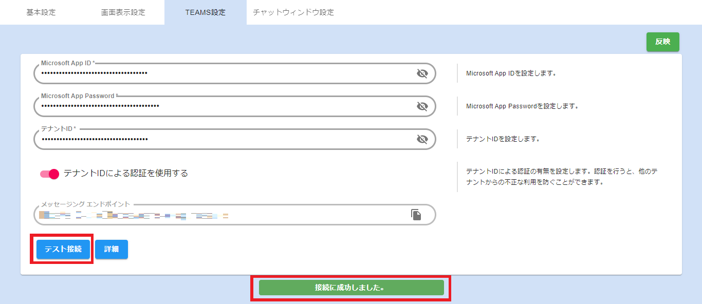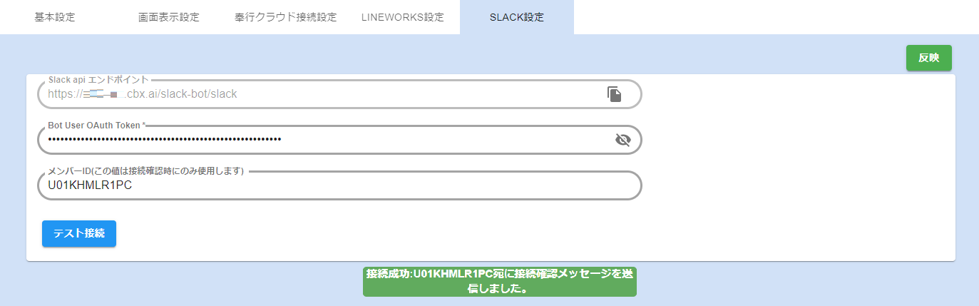 接続確認後に反映ボタンをクリックすることで設定内容を保存します。