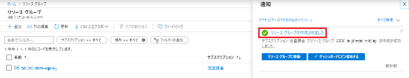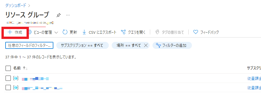 ・ リソースグループの作成(必要な場合のみ作業を行います。)