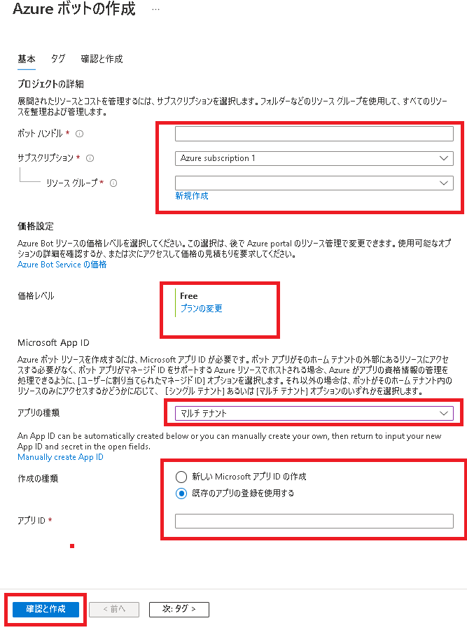 (Bot Serviceを登録するリソースグループです。すでに存在する場合、作成する必要はありません。)