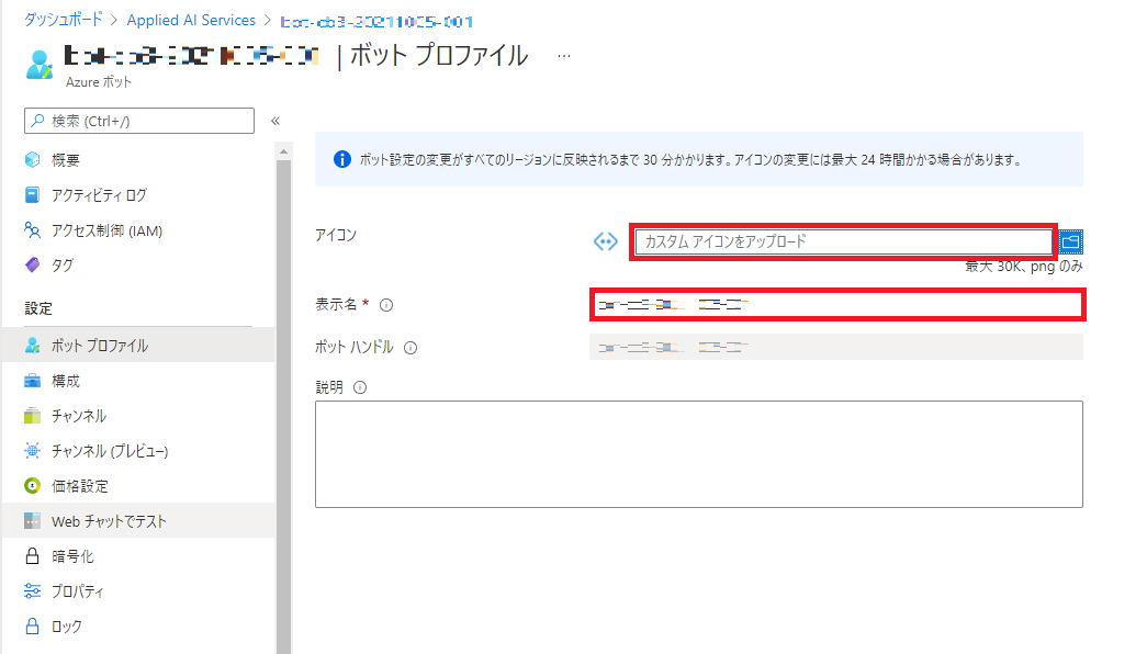 [ボット プロファイル] ページが表示されます。必要に応じアイコンと表示名を変更します。