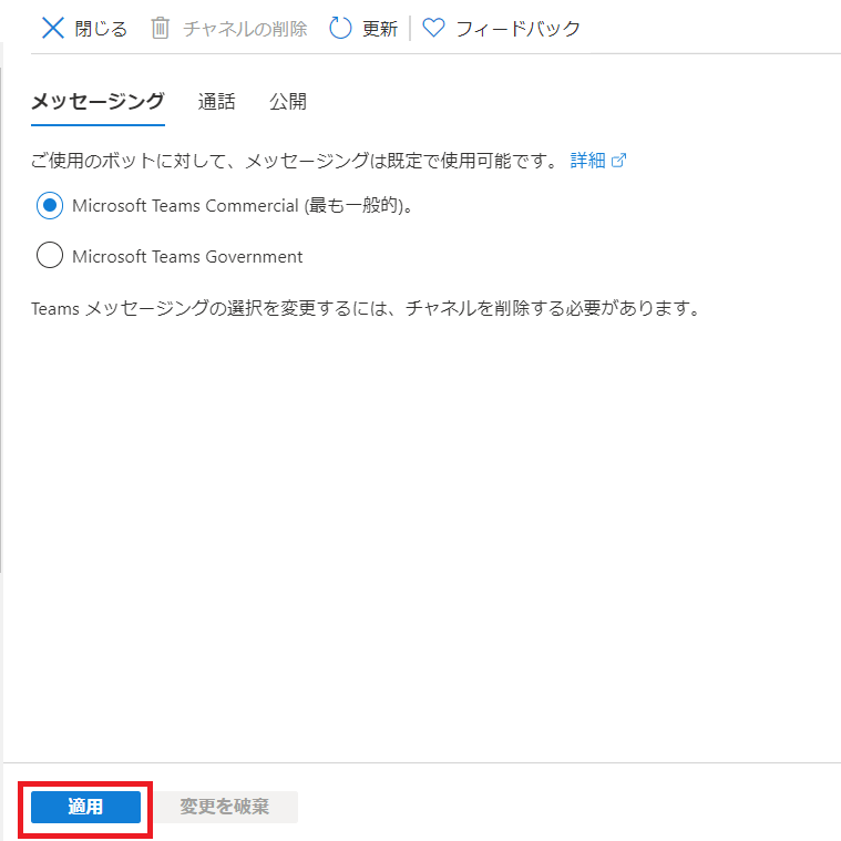 Microsoft Teams Commercialを選択し、「適用」をクリックします。
