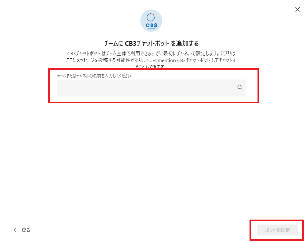 - [追加したいチーム]を選択し、[ボット設定]をクリックします。