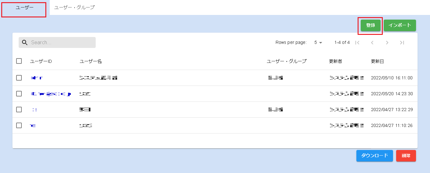 CB3管理画面>アカウント>ユーザーを選択し、登録ボタンをクリックします。