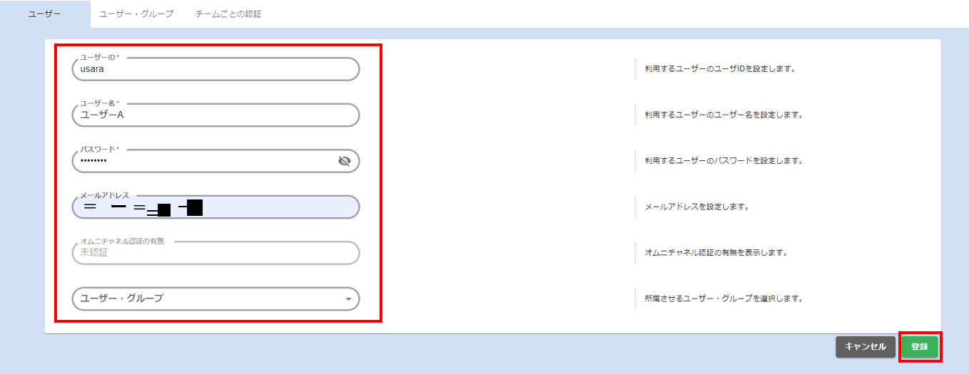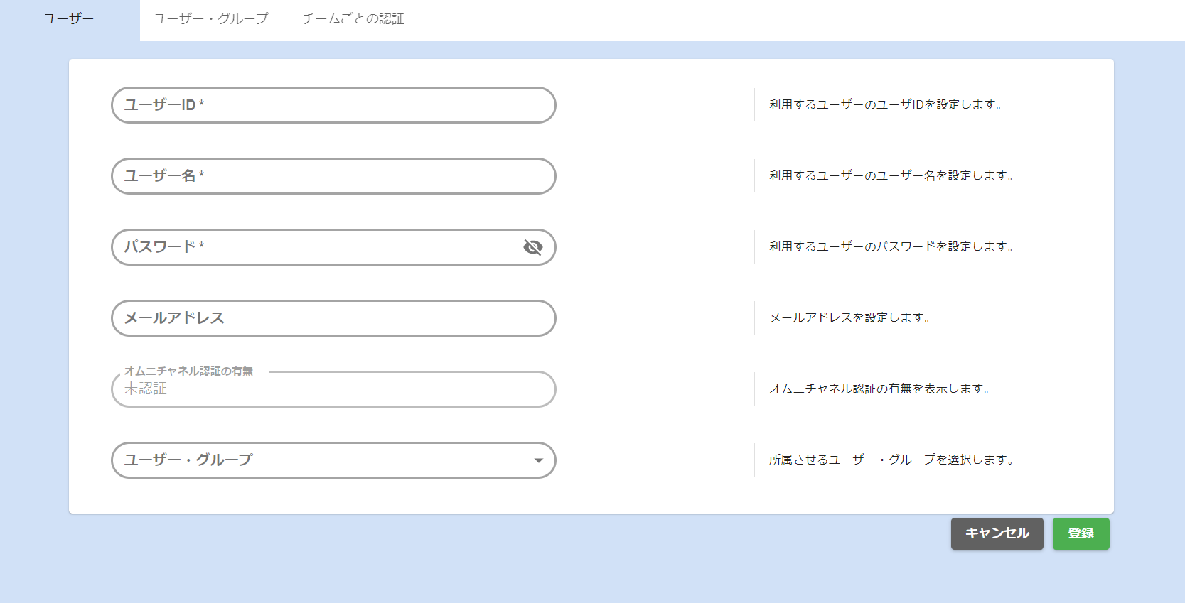必要な項目を入力し、登録ボタンをクリックして登録します。